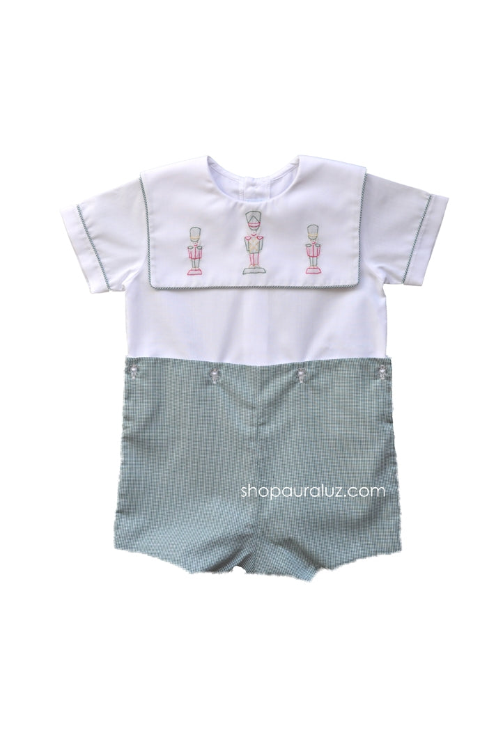 Auraluz Boy Button-On..Green check with boy collar and embroidered toy soldier