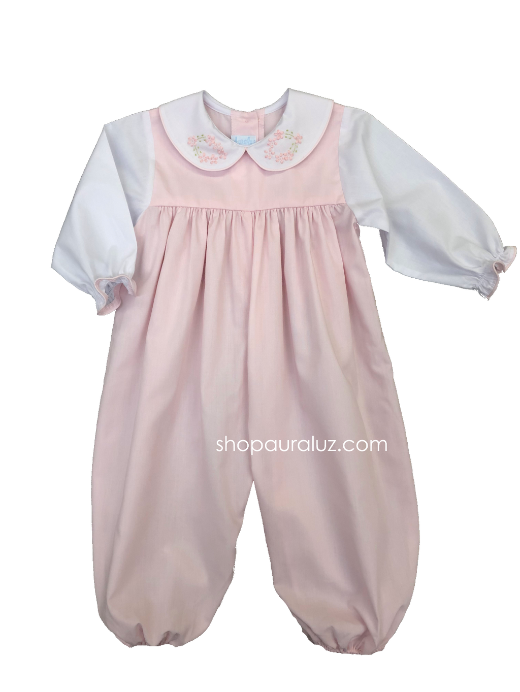Auraluz Girl Bubble/Button-Front..Pink w/binding trim, white p.p. collar and embroidered flowers