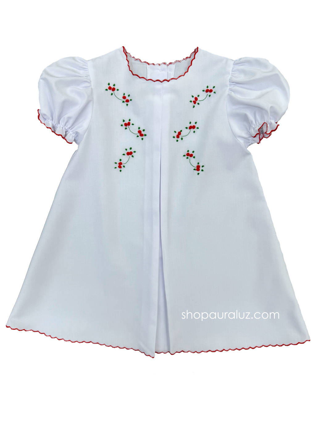 Auraluz Christmas Baby Dress...White with red scallop trim and embroidered tiny buds