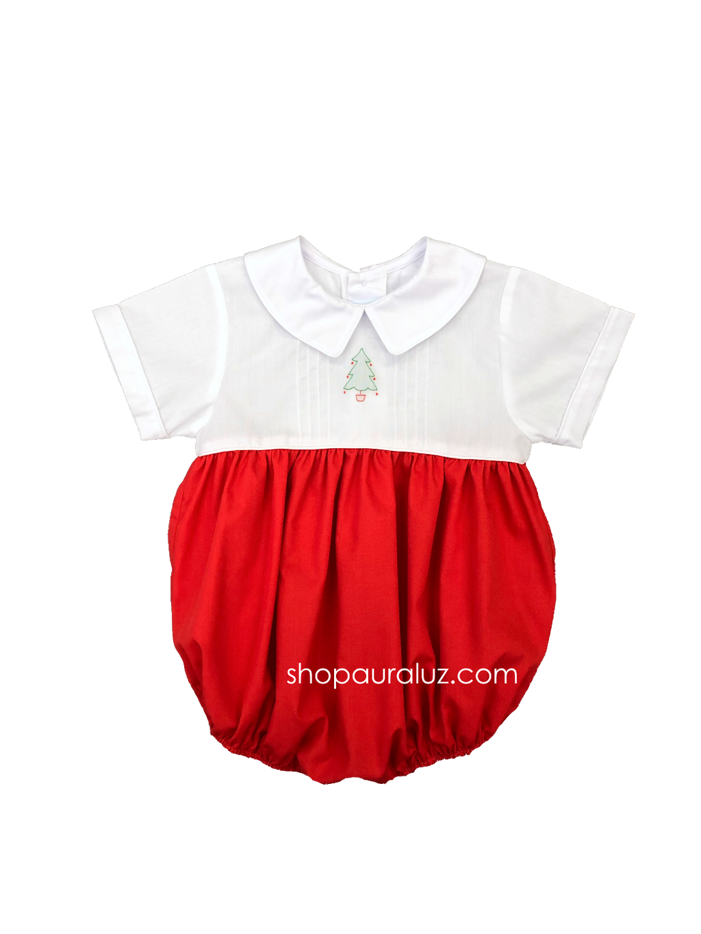 Auraluz Christmas Boy Bubble...Red/white with boy collar, tucks and embroidered tree